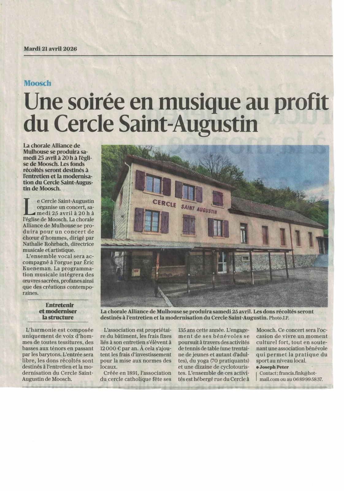 Paru dans le journal l'Alsace ce mardi 21/04/2026.