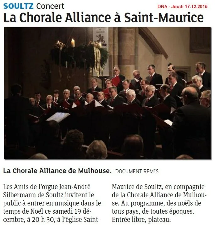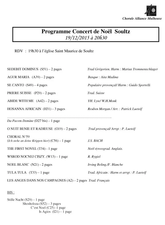 Nos répétitions se tiennent les mardis à 20h15, au chalet de la chorale (chemin des Cadets - Mulhouse).