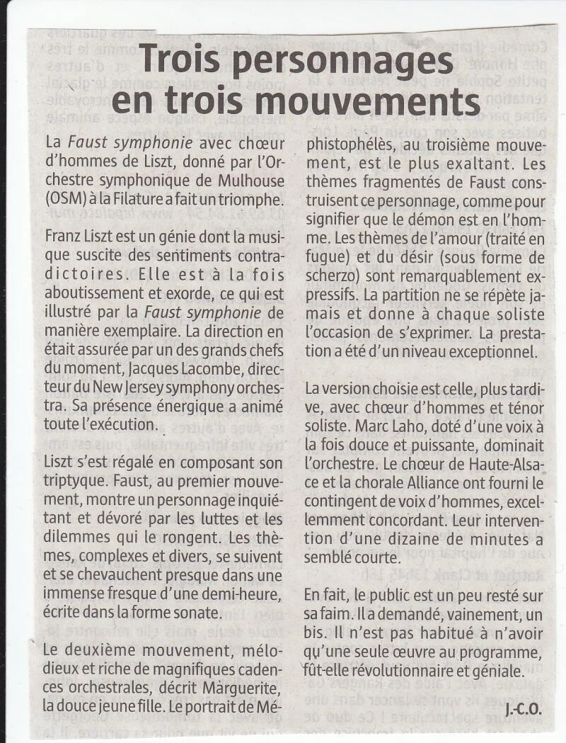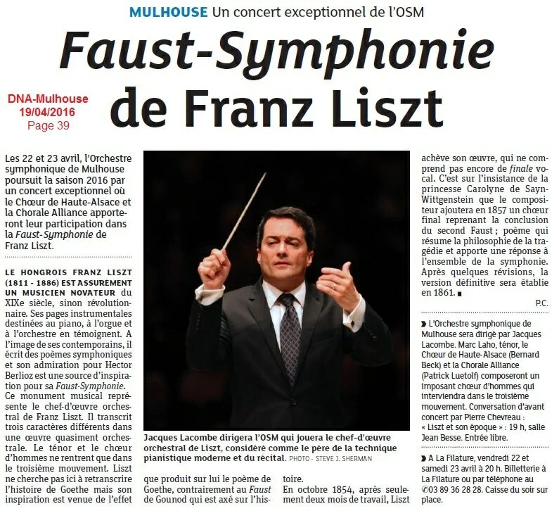 Nous participerons au concert donné à la filature avec l'orchestre symphonique de Mulhouse (Liszt)