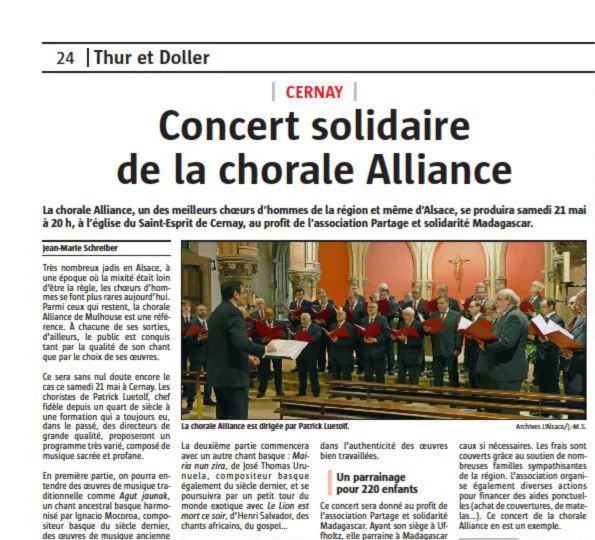 La chorale Alliance donnera en concert à Moosch. ....