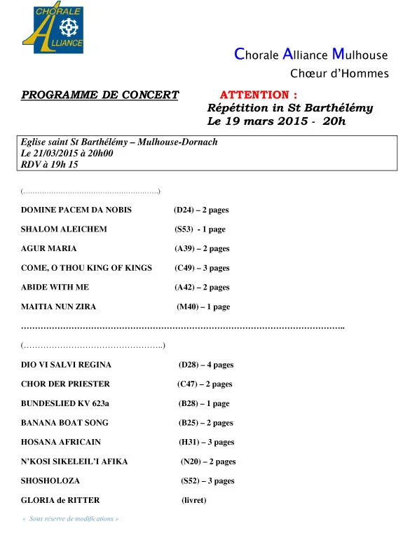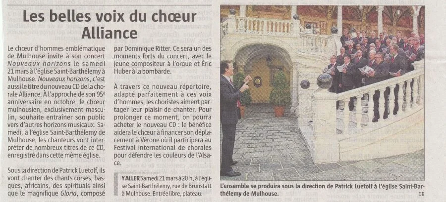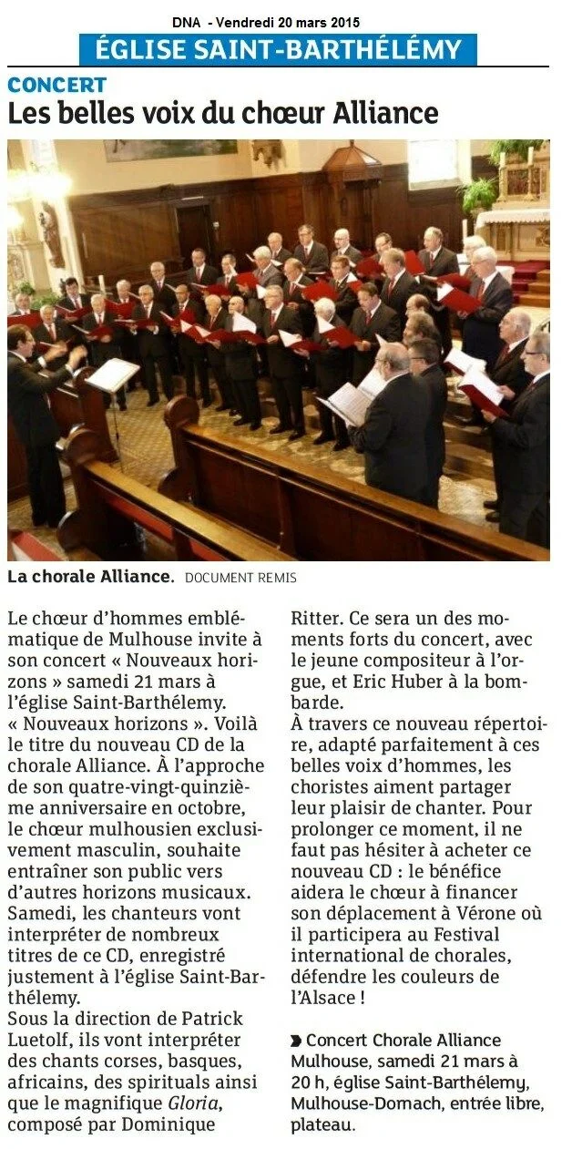 Concert Mulhouse Dornach Eglise St Barthélémy en remerciement de la mise à disposition de l'église pour l'enregistrement du Gloria de Ritter.