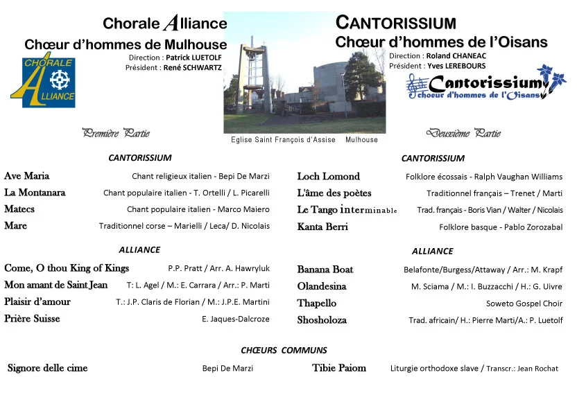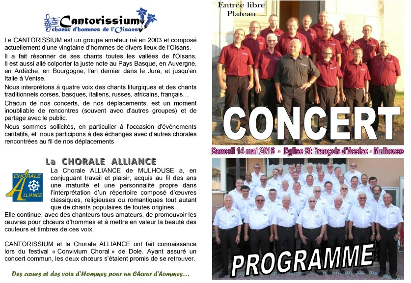 Nous accueillons le "CANTORISSIUM" choeur d'hommes de l'OISANS pour le WE de la pentecôte (14 et 15 mai).