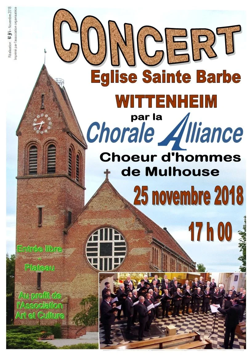 La chorale Alliancfe donnera un concert en l'église Sainte dd Wittenheim pour l'association Art et culture.