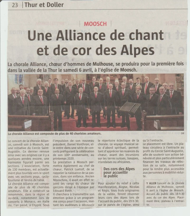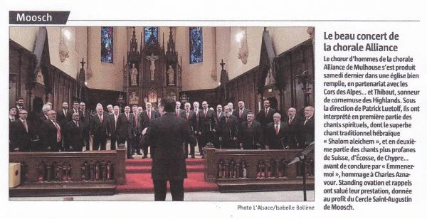 La chorale Alliance donnera en concert à Moosch. ....