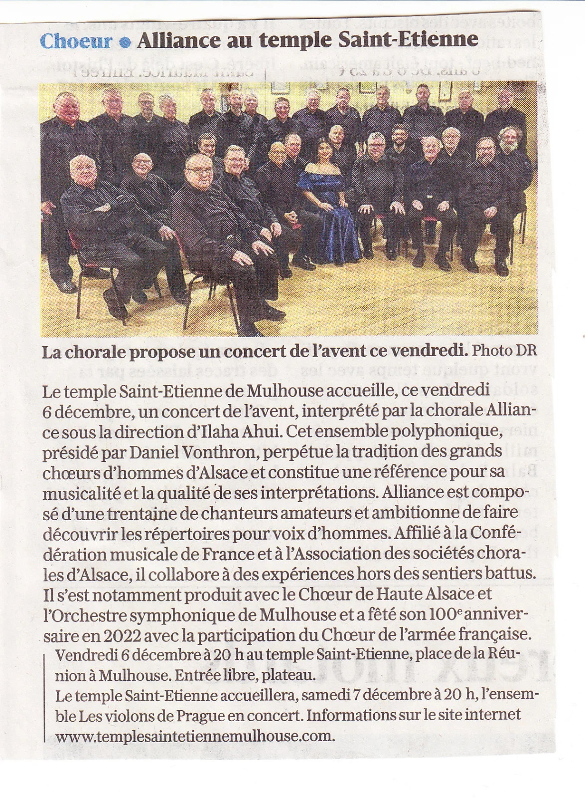 Nos répétitions se tiennent les mardis à 20h15, au chalet de la chorale (chemin des Cadets - Mulhouse).